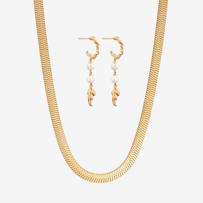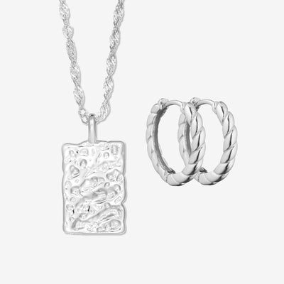 Hamret Twist Sæt: 1 ørering & 1 halskæde