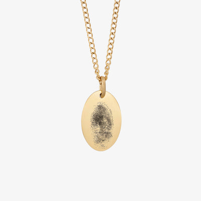 Indgraveret Fingeraftryk Oval Plain Plade Halskæde