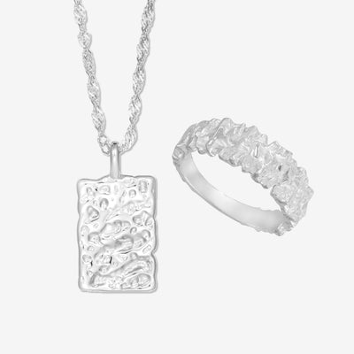 Magma Hamret Sæt: 1 ring & 1 halskæde