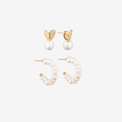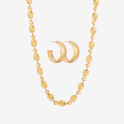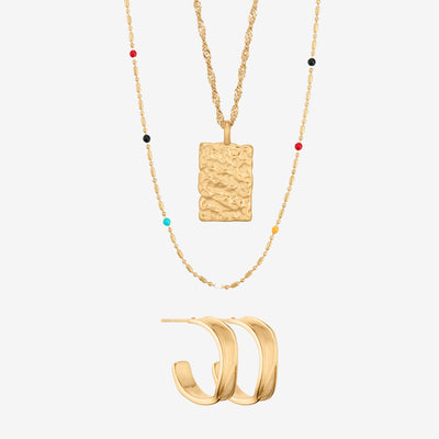 Multi og Chunky Hoop Sæt: 2 halskæder & 1 ørering