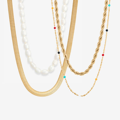 Perle, Slange & Dot Rope Sæt: 4 halskæder