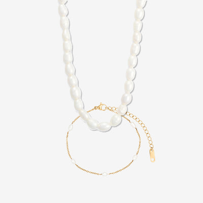 Simpelt Perle Sæt: 1 halskæde & 1 armbånd