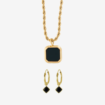 Sort Square Sæt: 1 halskæde & 1 ørering