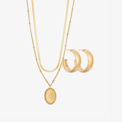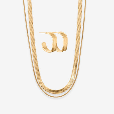 Chunky Hoop Double Halskæde Sæt: 1 ørering og 1 halskæde