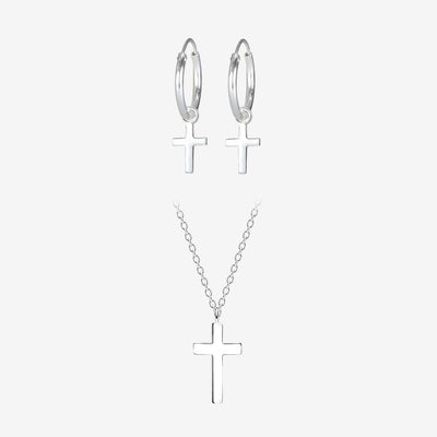 Kors Halskæde og Ørering Sæt