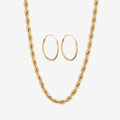 Twisted Rope Sæt: 1 ørering & 1 halskæde