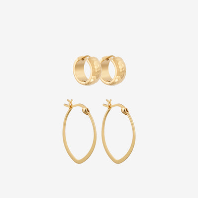 Mini French Lock Flat Hoops Sæt: To par øreringe