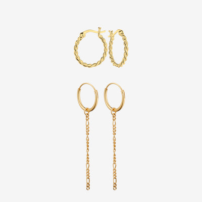 Thick Hoop Curved Bar Sæt: To par øreringe
