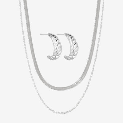 Sølv Pastel, Chunky Hoop Sæt: 2 øreringe