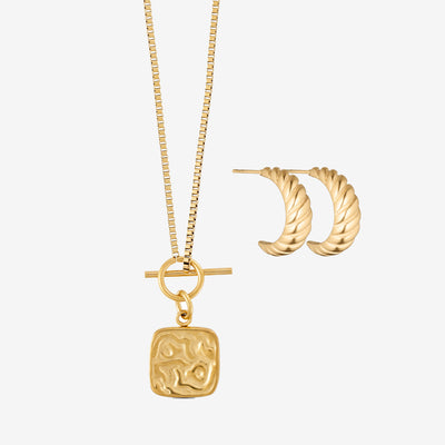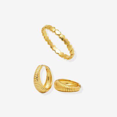 Magma Plade Sæt Guld: 1 Ring & 1 Ørering