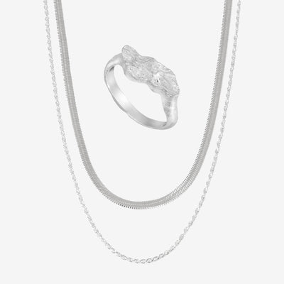 Magma Hamret Sæt: 1 Ring & 1 Halskæde