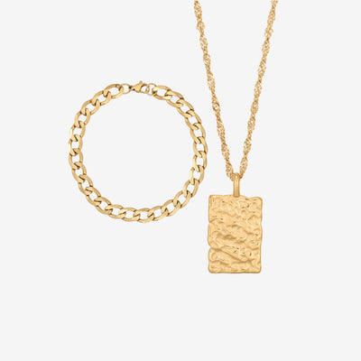Hamret Panser Sæt: 1 halskæde & 1 armbånd
