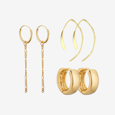 Curved og Chunky Hoop Sæt: 3 øreringe