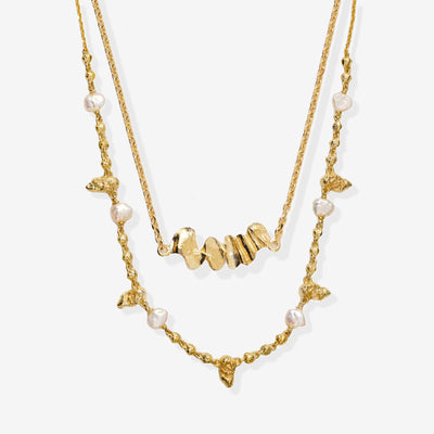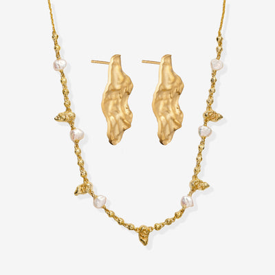 Leaf Perle Halskæde Guldbelagt