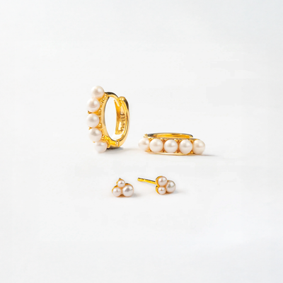 Triple Perle Stud Guldbelagt