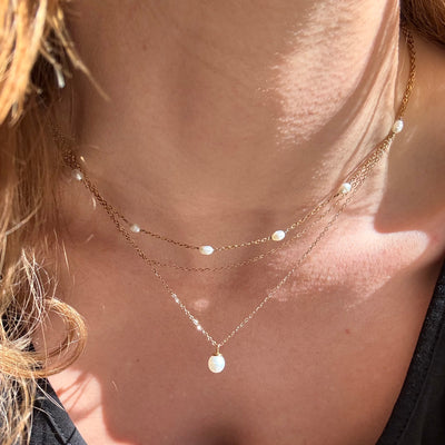 Er din favorit den simple, elegante solo ferskvandsperle, kan vi desuden glæde dig med det fineste design i vores kollektion. Det kan i den grad gøre dit look elegant og fint med en kæde som denne - et flot og simpelt design, hvor der er fokus på den lille detalje.