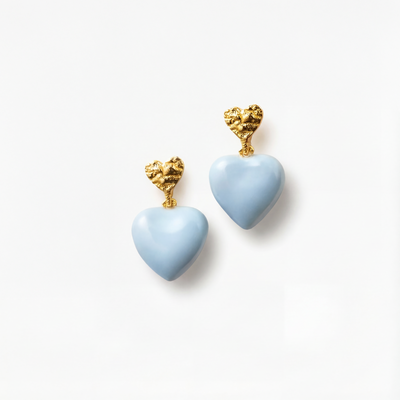Blåt Hjerte Stud Guldbelagt