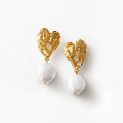 Hjerte Perle Øreringe Guldbelagt