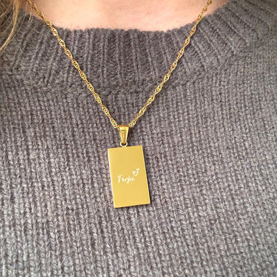 Indgraveret Kærlighed Rectangle Plain Plade Halskæde