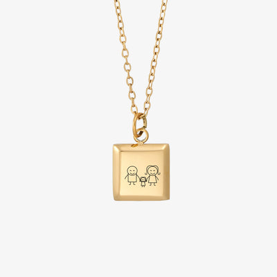 Indgraveret Stjernetegn Kvadrat Halskæde