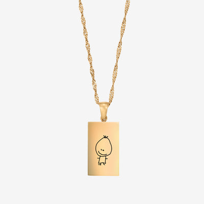Indgraveret Stickman Rectangle Plain Plade Halskæde