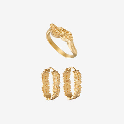 Magma Plade Sæt Guld: 1 Ring & 1 Ørering