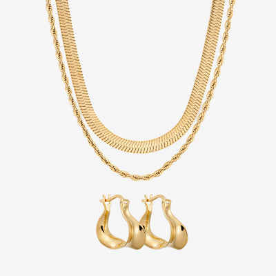 Curved og Chunky Hoop Sæt: 3 øreringe