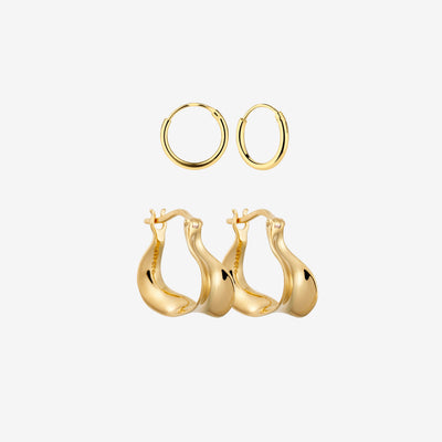 Thick Hoop Curved Bar Sæt: To par øreringe
