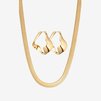 Chunky Hoop Double Halskæde Sæt: 1 ørering og 1 halskæde