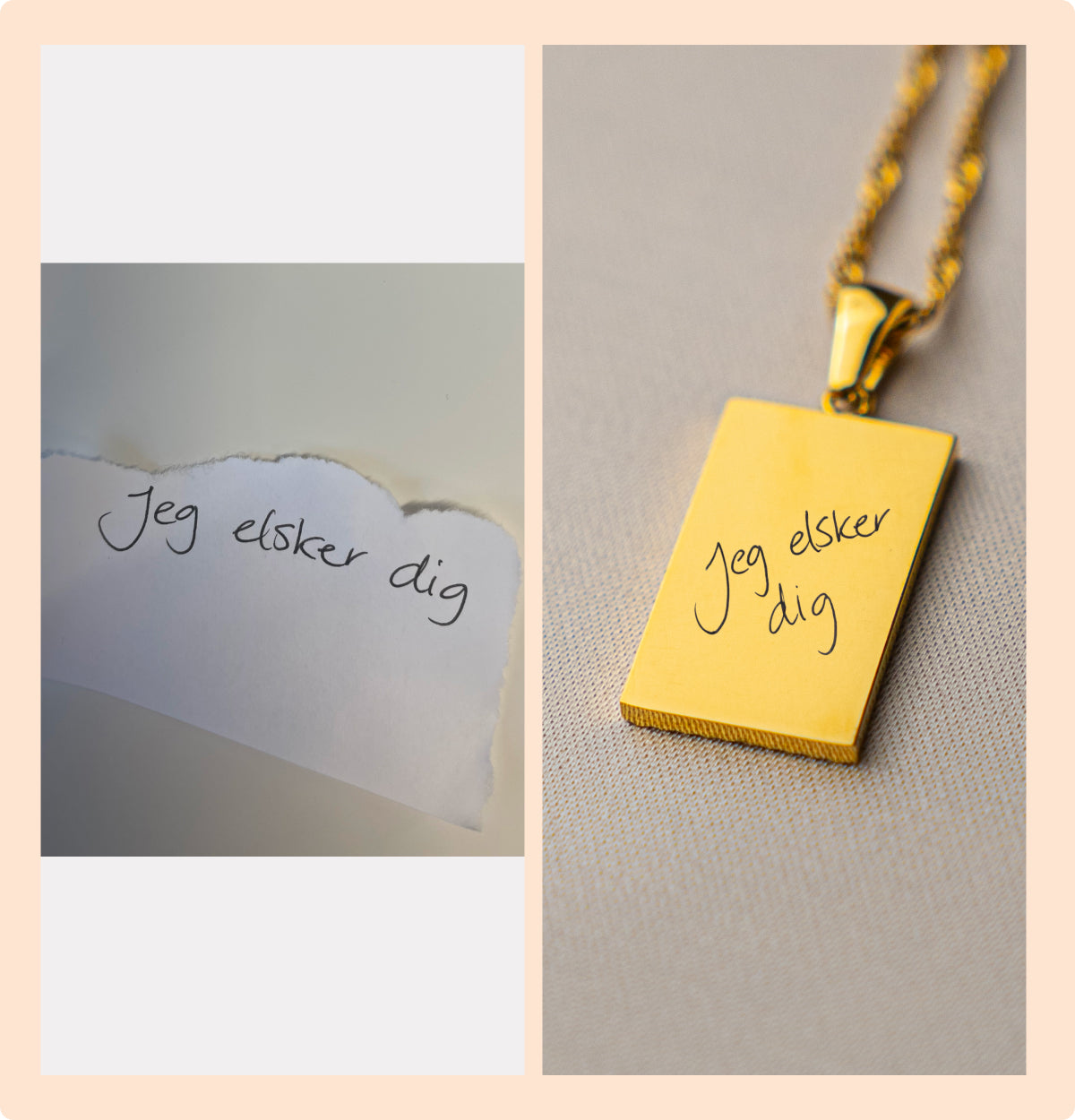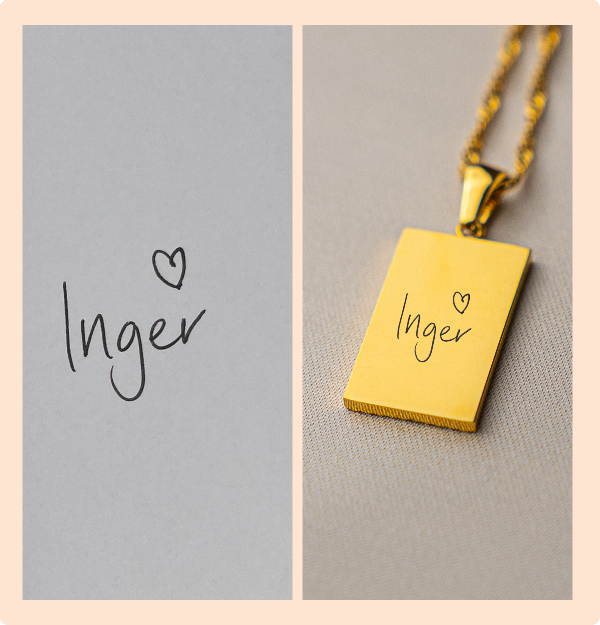 Find masser af indgravering tekst ideer ved at tage et kig på nogle af vores kunders eksempler på personlige indgraveringer. Her på siden finder du masser af inspiration til indgraveringer på halskæder, ringe og armbånd fulde af personlighed og kærlighed.