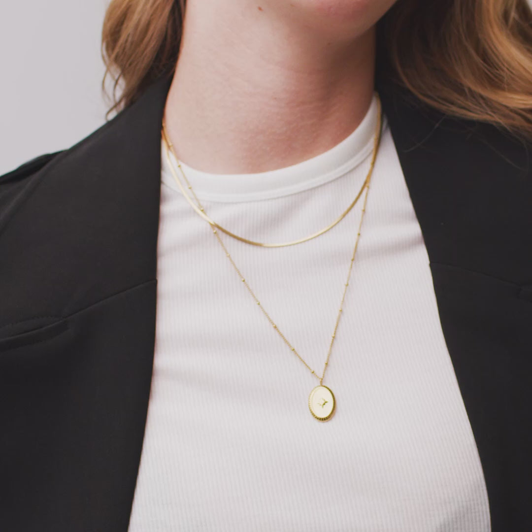 Materialer: Rustfrit stål belagt med 18 karat guld + PVD-coating. Smykkerne er vandfaste og allergivenlige, blyfri og nikkelfri jf. dansk lovgivning.
