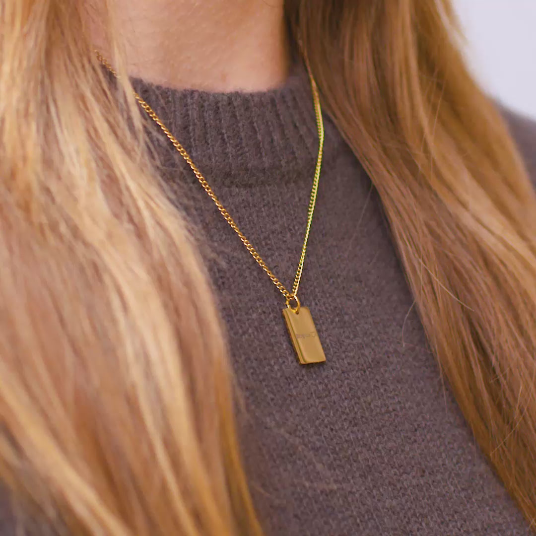Indgraveret Kærlighed Rectangle Plain Plade Halskæde