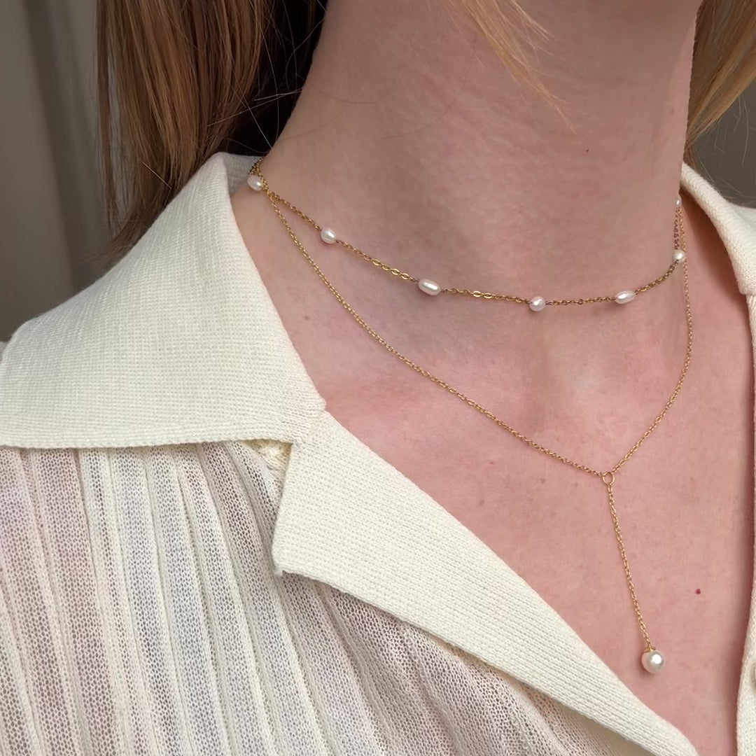 Vores Kæde Hængeperle 14K Guldbelagt er et enkelt, men udtryksfuldt smykke. De fine og feminine detaljer sætter prikken over i'et på ethvert outfit.