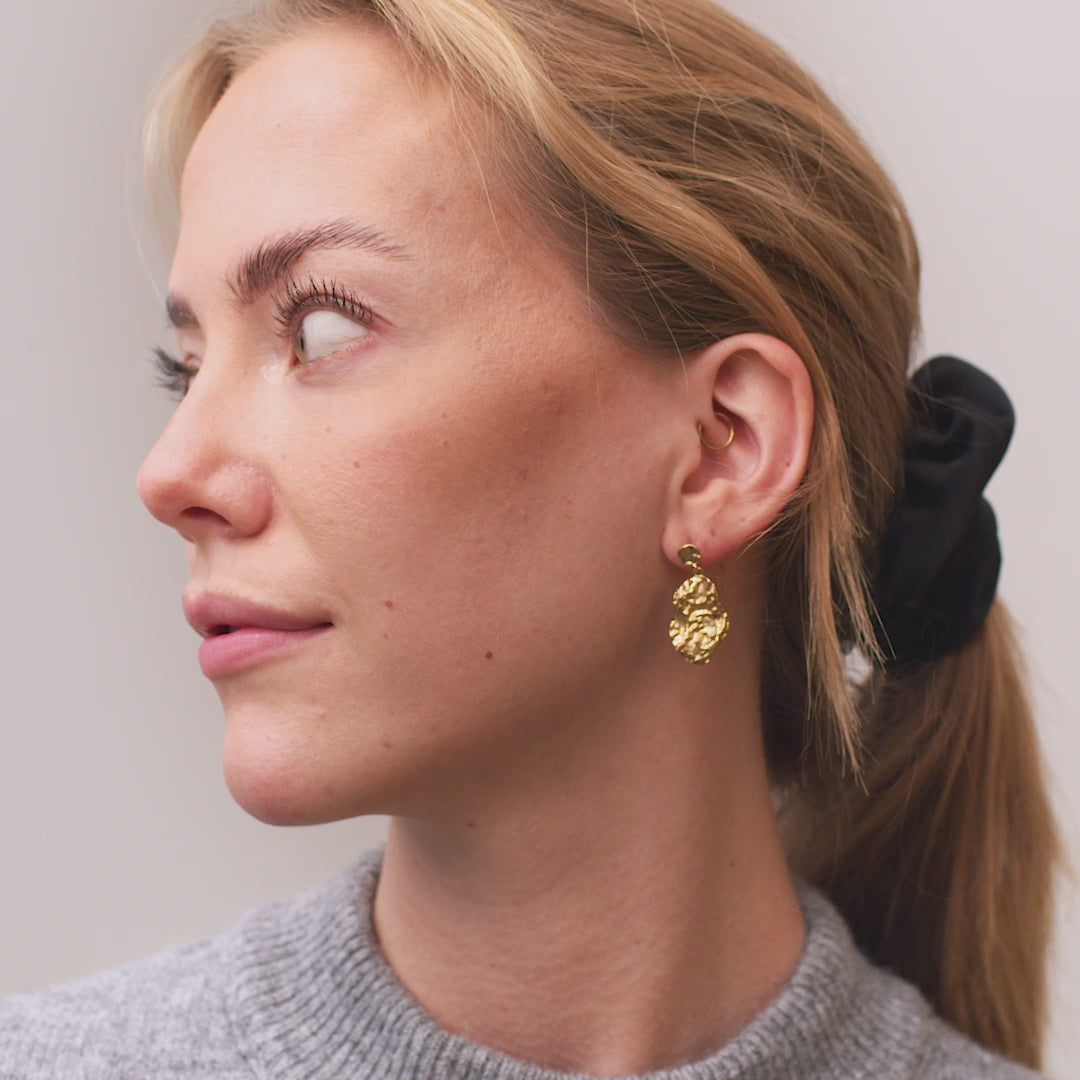 - Øreringene er af 925 sterling sølv guldbelagt med 18 karat guld + nano-coating. Smykkerne er nikkelfri og blyfri, jvf. dansk lovgivning.