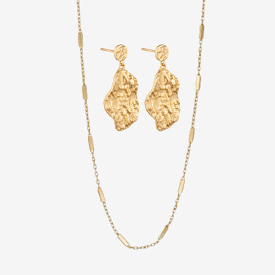 Magma Hænge Stud Guldbelagt er et style, der skaber opmærksomhed. Dens hamrede look gør den unik og klædelig til mange forskellige arrangementer.