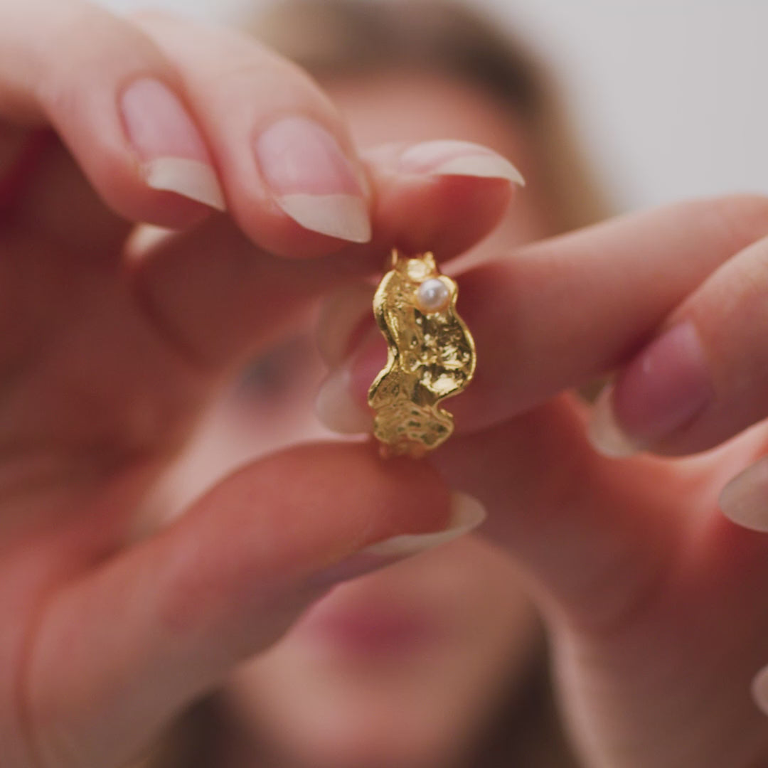 - Ringen er af 925 sterling sølv guldbelagt med 18 karat guld + nano-coating. Smykket er nikkelfrit og blyfrit, jvf. dansk lovgivning.